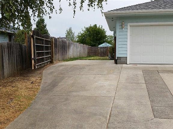 Wonderful open floor plan for this 1464 square foot, 3 bedroom, 2 bath home located on a quiet street, close to Redwood School. Gas fireplace in living room. Next to the double car garage is the RV pad with 10' x 18' paved with another 12+ feet unpaved. Large kitchen and dining room windows look out over a 10'x 26' foot fenced play area for kids or could be used as a dog run. The fenced, grassy back yard is huge and includes 2 large shade tree, an 8'x 12' storage shed, and a 10'x 15' patio.