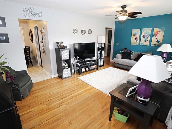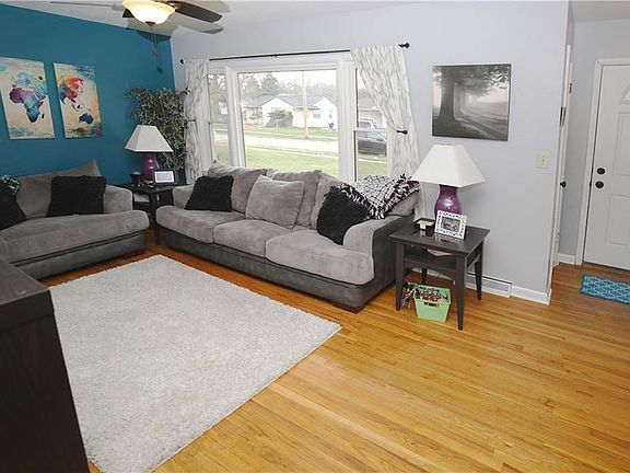 Cute home at the end of a cul de sac! Step in to this two bedroom, one bathroom home with original hardwood floors and feel right at home! Sits on a quiet lot backing to trees, yet is minutes from several social gathering places and shopping centers. Basement features a large family room that can be used as a movie or craft room, as well as a large area for storage. Walk out to the back yard from the basement and enjoy the beauty of the fall trees! Priced to sell and move-in ready!