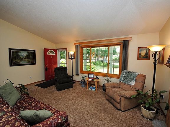 Beautiful 4BR/3BA/2Car Ranch located close to High School & Elementary! Newer Stainless Steel Appliances in spacious eat-in Kitchen, Master Bedroom w/ Private Bath, Main Floor Laundry, Full-Finished Basement w/ huge family room, office, bath and bedroom! Gas Fireplace, Vaulted Living Room, Gas Furnace & Central Air! Landscaped beautifully w/ custom built storage/garden building! Heated Garage & Covered entry! Must see!