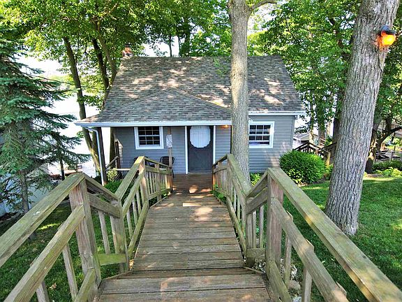 Adorable main Lake Shafer cottage in a great location. This 2 bedroom 1 bath cottage sits on a premier lake lot, with plenty of shade trees, new roof, new water heater, steel seawall, multi tier decking, party deck on waterfront and covered deck just outside of the walkout basement. Interior upper level has vaulted ceilings in the living room, 2 bedrooms and a loft that could be used for extra storage or sleeping. The lower level has a wide open eat-in kitchen that leads to panoramic views of the lake. Affordable lake getaway ready for summer fun!