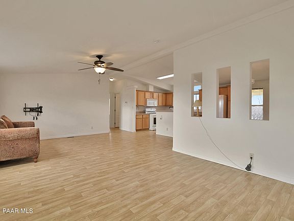 Wonderful Views! Sitting on over 1/3 acre in Prescott, this single level 3 bedroom, 2 bath home features views of Granite Mnt, San Francisco Peaks, Bill Williams and the Dells. Spacious, light & bright with a well designed split floor plan. A generous master suite complete with walk-in shower and separate corner tub. Two additional oversized bedrooms with views. New solid surface flooring was just installed throughout, no carpet! New roof in 2020! All appliances convey gratis. Two car garage with additional door providing access to side yard. The oversized backyard is lovely with covered patio, perfect to take in the views and excellent size for your pups. Located minutes to shopping, schools and restaurants!