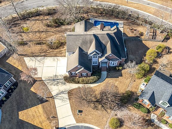 Gated Community of Gates Four: Home features 4 bedrooms, 2.5 bath, in-ground pool (liner 2023), 3 car garage, Hardwoods throughout, Tile in wet areas, Foyer, Formal dining, Office (flex room), Family room with 2 story ceiling and wood burning fireplace, Laundry with storage, Owner suite downstairs with large master bath, separate vanities and a tiled walk-in shower. Kitchen features island with wrap around seating and oven, some stainless steel appliances, and granite countertops. 3 bedrooms, full bath and attic storage upstairs. Relax in the backyard on the covered porch or around the fireplace on the back patio. Whole House Generator
