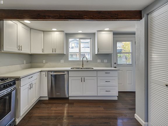 100% FINANCING AVAILABLE THRU KEY-BANK FOR QUALIFIED BUYERS. fully renovated 1-lvl ranch in the Powellhurst-Gilbert neighborhood. New soft-close kit cabinets, quartz countertops, gas range, under-mount sink.SS apps, tiled bathroom & new flooring. New roof. Brand new gas furnace. Fully-permitted new electrical wiring throughout, including meter & panel. Detached 1-car garage & shed, easy access to I205.