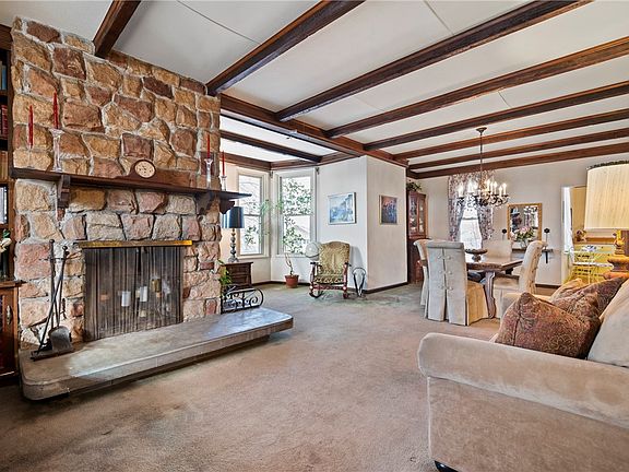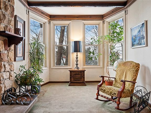 Sitting atop an expansive corner lot, this historic home was built in the era of master craftsmanship. From the butterjoint brick exterior to custom wood finishes, it is as unique as it is charming. The main level features a massive living space bathed in natural light from extraordinary bay windows, a farmhouse kitchen, and most notably, a stunning stone fireplace with wraparound mantel – truly the centerpiece of the home’s storied past. This level also surprises with a first floor primary suite with anteroom, a decorative fireplace, and a combination ¾ bath/laundry room. Ascend to the second floor and find a full bathroom and four sizable bedrooms, including the original owner’s suite with dual dressing rooms. The unfinished third level offers an opportunity for its future owner to create additional living space or walk-up storage. The cavernous basement offers soaring ceilings and solid construction, making it an ideal workshop. Note the newer furnace and an entirely new sewer line!