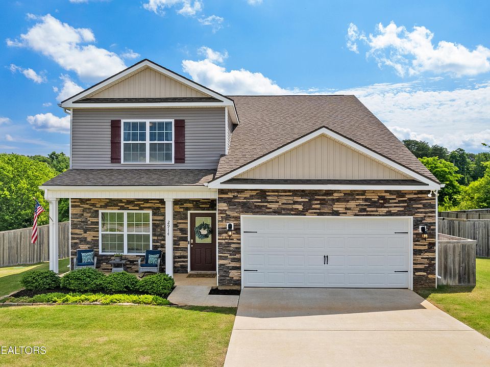 Welcome to 2914 Sagegrass Drive! It's the perfect floorplan for multigenerational living with a primary suite on both levels! This 5 bedroom, 3.5 bathroom home offers a welcoming foyer with a well designed drop zone, a flex space perfect for a music room or a formal dining space, an open living/kitchen area with an island and upgraded pantry, under stairs storage, a two car garage, and a large yard. The primary suite on the main floor is spacious with a walk-in shower, a double sink vanity, and a walk-in closet. The stairs are highlighted by a window at the landing that brings nice light to the space and lead to four great bedrooms. The upstairs bedrooms are also spacious - the sellers use the one at the top of the stairs as a game/TV room - and the upstairs primary suite has two closets. Then the large yard is a dream. The front yard is level with a long driveway for guest parking. The backyard is fenced with a storage building and there's a picturesque fire pit area nestled into the back corner of the lot.