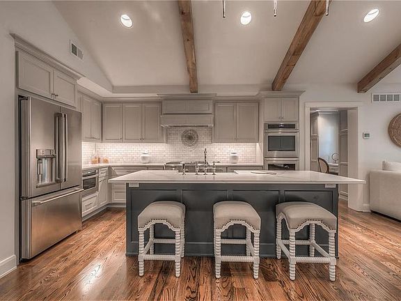 - Kitchen Island, Pantry, Vaulted Ceiling(s), Eat-in Kitchen, Custom Cabinets, Painted Cabinets
