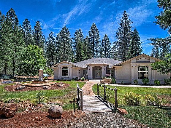 WOW! What a beauty! This 3 bedroom 2-1/2 bath all custom 2,221 sq.ft. is tucked back away from the road for privacy. Just you enjoying the singing birds and deer! Home features crown moulding throughout, granite and tile counters, ceiling fans and transom windows over bedrooms. Hunter Douglas custom blinds. Casual dining off the kitchen area as well as a formal dining room adjacent to the Great Room. Beautiful full wall windows focus on the gorgeous backyard covered patio and pool and waterfall. 2 additional water features for the peaceful sound. Extra room for parking with the 3 car garage and additional outdoor parking. It is richly populated with trees for wooded views all around.