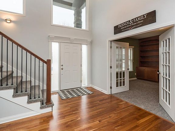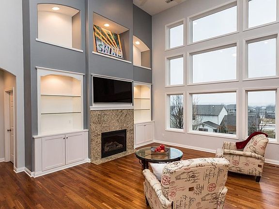 Must see 5 bedroom (including a bedroom & bathroom on the main level) w/ finished walkout lower level, extensive landscaping including patio & fire pit situated in Bristol Cove neighborhood! Newly refinished hardwood cherry floors greet you when you open the front door & welcome you in to the 2 story family room w/ floor to ceiling windows & custom built shelving surrounding the fireplace. Kitchen features tons of cabinetry & counter space, 2 tier island, stainless steel appliances & walk in panty. Large dining area opens to deck. Main level office with custom desk & bookshelf, main level bedroom, bathroom, mudroom & laundry too! 2nd floor master suite w/ double sink vanity, Jacuzzi tub, tile shower & walk in closet. Finished walkout lower level w/ large family room complete w/ built ins & tv, wet bar, 5th bedroom, non conforming room & storage. Large 3 car garage w/ extra storage units. Within walking distance to 3 area parks & trails!