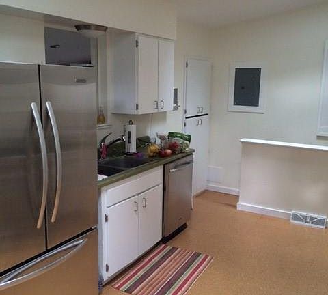 Great mid-century Central Boulder house walking distance from Ideal Market shops. Light and bright with 6 skylights and vaulted ceilings throughout main level. Stainless appliances, including Electrolux gas range and Kitchen Aid refrigerator. Hunter Douglas cordless shades. Newer carpet, freshly painted, and washer/dryer in lower level. Lower level completely renovated in 2013, including new bathroom tile and fixtures. Large backyard. Three bedrooms upstairs and one downstairs, plus office. Walk or bike to all the best that Boulder has to offer! Available starting in September; timing negotiable. Per City of Boulder Code, Section 9-8-5, maximum occupancy is no more than 3 unrelated occupants. Renter pays all utilities. Plenty of on-street parking in front of house. Small pet negotiable. Move-in date negotiable starting September 1.