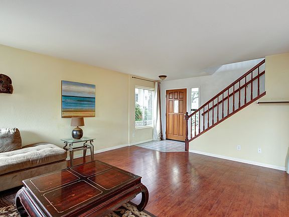 HUGE PRICE REDUCTION!! RANGE $435,000 to $455,000!! Outstanding highly updated home with a great open floor plan! White kitchen cabinets, granite counters, stainless steel appliances; custom glass tile fireplace, tile and laminate wood floors downstairs, all new carpet upstairs. Large master suite with vaulted ceilings, upgraded walk in shower, upgraded baths. Ceiling fans in bedrooms. Stamped concrete back with newer privacy fence, new landscaping; Private street, close to Hwy 94 and shopping.