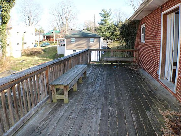 This 2 bedroom, 1.5 bathroom Ranch brick style home offers large living room with fireplace. Basement has walkout and could be used as separate living quarters, with fireplace, kitchen, bedroom, bathroom & spare room. Nice large deck overlooking fenced-in backyard with storage building. Sq. ft. is approximate.