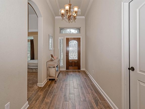 Beautiful Brick 4 Bedroom Home Located in GATED Section of Briarwood Crossing. The Primary is Situated Away from the Other Rooms and Features an En-Suite Bathroom with Double Sinks, Huge Walk-In Closet, Soaking Tub, and Separate Shower. One of the bedrooms could almost be considered a second primary as it has a full bath right next to it, and the other two bedrooms has a full bath in between them. The Living Room Features a Fireplace and is Open to Breakfast Area and Kitchen. The Kitchen has Sleek Stainless Steel Appliances, Gorgeous Granite Countertops, and A Huge Island with Breakfast Bar. There are 2" Blinds Throughout the Home and Rustic Wood Looking Tile in the Common Areas. The Backyard is Perfect for Entertaining as it has a Large Covered Patio Offering Plenty of Shade. The Community has Lake Access, Splash Pad, Playground, and a Newer Elementary School. Washer, dryer, fridge are included.