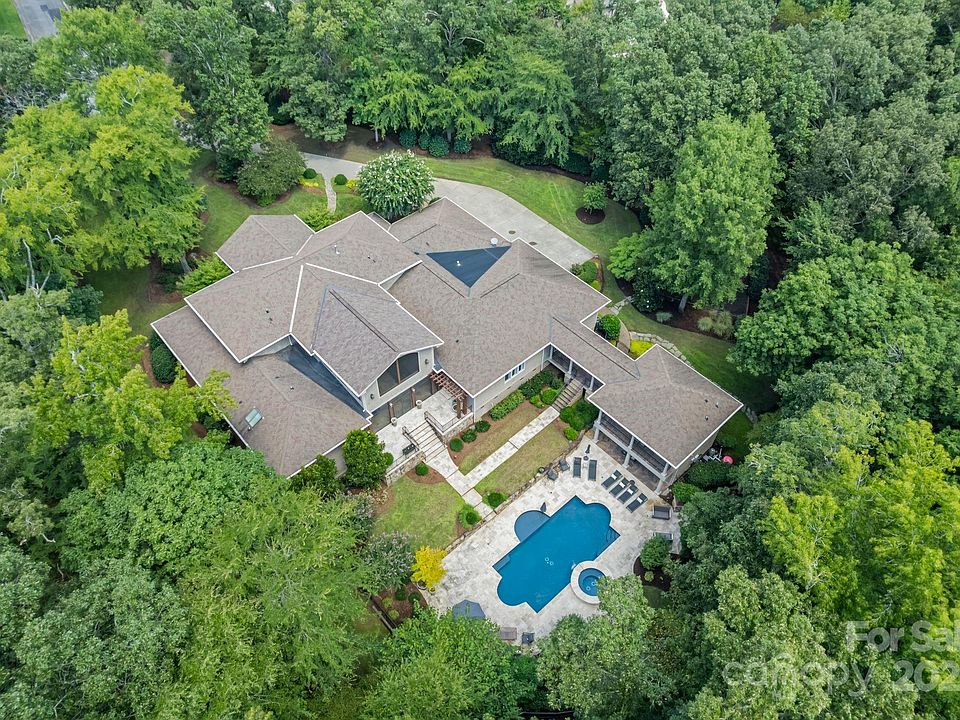 Luxury estate situated on 3 ACRES in prestigious gated community of Woodhall. High end custom kitchen, backyard oasis, furnished pool house, this home has it all. Mature trees on a private cul-de-sac lot located across the street from highly desirable Marvin Ridge Schools. Welcome into the home by a stunning two-story grand foyer with double staircase. The chef’s kitchen features top-of-the-line appliances, quartz countertops, and rich custom cabinetry. The main floor has a dedicated theatre room, recreation room with full wet bar, and a spacious primary suite complete with large walk-in closet. Entertainment inside and out with newly updated saltwater pool, outdoor grill area, 996-square-foot covered and screened lounge area with fireplace. Don't forget the outdoor batting cage with lights. Furnished pool house offers a full kitchen, living area, large bedroom, and two full bathrooms—ideal for guests or in-law suite. Meticulously landscaped grounds and maintained home.