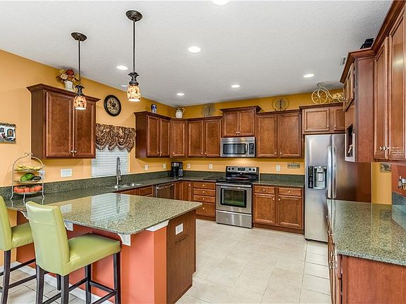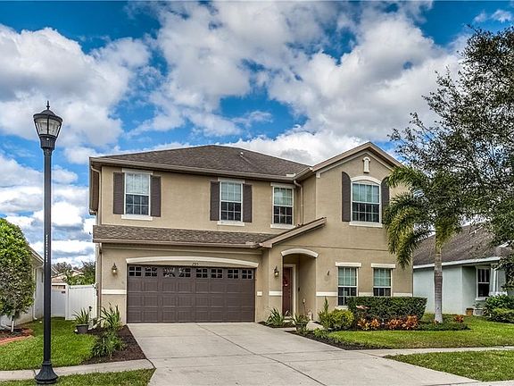 Beautiful 4 bedroom, + bonus room, 2 ½ bath, pool home in the desirable gated community of Stonebrier. Zoned for all A-rated schools (McKitrick, Martinez, Steinbrenner). Spacious open floor plan is great for entertaining inside and out. Large kitchen features 42" solid wood cabinets with elegant crown moulding, granite countertops, stainless steel appliances and a breakfast bar open to an oversized great room. Sliders open to a wonderful backyard oasis featuring a new covered lanai in 2017, flagstone pavers, solar heated pool with a new PureChlor saltwater system, newer variable speed pool pump, and a 6 seat hot tub. Property is fully enclosed with a 6' privacy fence, new landscaping, new sod, and new sprinklers. Floor plan also features a separate formal dining and living room. All bedrooms and laundry room are upstairs. The bonus room offers ample space perfect for an office, game room or could be easily converted into a 5th bedroom. Home has been impeccably maintained and is truly move-in ready. Community amenities include a pool with waterslide, clubhouse with fitness center, soccer field, cricket pitch, basketball court, and playgrounds. Conveniently located with access to shopping, golf, restaurants, hospitals, the Veterans Expressway and the Suncoast Pkwy.