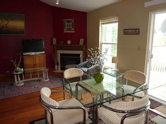 UPPER UNIT WITH NO ONE LIVING ABOVE YOU. This summer enjoy the relaxing pond views from your balcony. Spacious Great Room with gas fireplace, hardwood floor, and cathedral ceiling. Great Room is open to kitchen and dining area which has ceramic flooring. Master bedroom with attached bathroom. Guest room has its own bathroom. Bathrooms have ceramic tile. Finished laundry room. Detached garage. Great location. Close to schools.