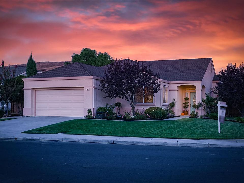 Beautifully updated light and bright single story located in sought after Saddleback neighborhood of Livermore. Minutes to great schools, parks, trails, shopping, dining, 580, ACE Train, Livermore Wine Country, and Downtown. Parklike corner lot leads to your entrance through a custom front door. Amenities of this meticulously maintained home include travertine floors on the diagonal in the entry, great room, kitchen, laundry room and baths, and plush carpeting in the bedrooms, & newer granite counter tops in the kitchen with a beautiful glass tile backsplash. The spacious, eat-in kitchen boasts abundant natural light. The great room features a cozy gas fireplace, formal dining room and open concept living which leads to a resort style, low maintenance backyard with a sparkling pool, patio, with palm trees and flower beds surrounded by river rock. The spacious master suite includes dual vanity sinks, split bath, and large walk in closet. This home is inviting inside & out!
