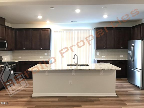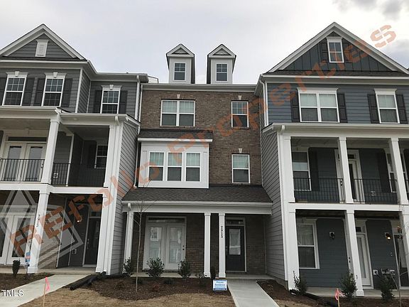 Bright and Airy! Features a spacious front porch! 1st Floor guest room w/tray ceiling, full bath + access to the rear entry 2-Car Garage! Main level on 2nd level w/wood look flooring! Fully equipped kitchen w/SS appliances, backsplash tile, granite counter top/center island leading to the wooden deck, overlooking dining & spacious family room! 3rd Level include 2 secondary bedrooms, & a primary suite w/tray ceiling, WIC, double vanities, & a huge wall tiled glass shower room w/ sitting bench. Washer and dryer are included. Pool community w/playground & picnic pavilions. Greenways lead to American Tobacco Trail.