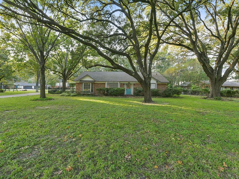 Welcome Home! This property sits on 1 acre in the heart of Katy! Beautiful lot with gorgeous trees! This home has so much to offer!! Totally updated Kitchen, utility room, bathrooms, flooring and more! This home lives large with large open spaces.Luxury Vinyl through out the main areas, carpet is only in bedrooms. The master boasts separate closets w/beautiful updated primary bathroom w/quartz counter tops & custom cabinets. Both secondary bedrooms have very large closets. The kitchen is completely new w/quartz countertops, new stainless appliances. Custom cabinets offer lots of storage space. The utility room is all new as well w/custom cabinets.The oversized heated 5 car garage with plenty of room for workshop as well. The half bath is in the garage. Man cave deluxe! This home is a must see!