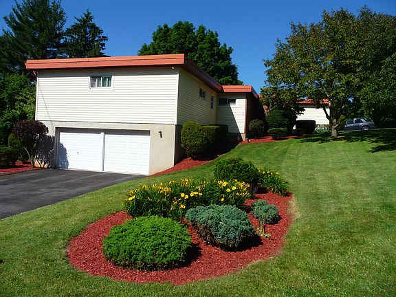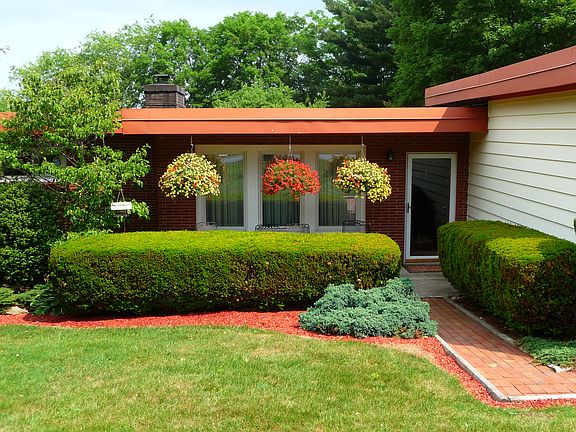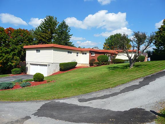 1 story brick and vinyl siding. Flat commercial roof. Attached workshop. Basement two car garage. New vinyl siding updated 5 years ago. Newly painted inside and out 4 years ago.
