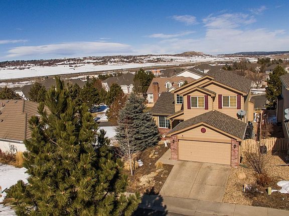 SUPER Cul-de-Sac location in Popular Masters Club in Plum Creek! Shiny, Bright and Updated with Newer Paint and Newer Carpet. The Large Open and Bright Kitchen has Gorgeous Solid Surface Quartz Counter tops, open eating area, and newer Stainless Steel Appliances. Great Mountain Views from the Large composite Deck and the Beautiful Master Bedroom. Main Floor Office, Formal Dining and Living Room, Large Main Floor Family Room with gas log Fireplace, is open and Flows to the Kitchen. Finished Basement Den or 4th Bedroom, Egress Windows, and rough-in for future bathroom. Plantation Shutters - LOW MAINTENANCE XERISCAPE TYPE LANDSCAPING - Minutes from Downtown Castle Rock - This Is It.