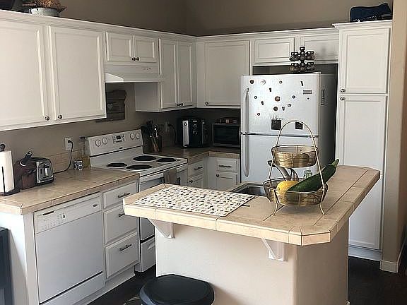 - Breakfast Bar, Pantry, Shower/Tub Combo, Tile Counters, Kitchen Island, Open Floorplan, Fiberglass Stall Shower