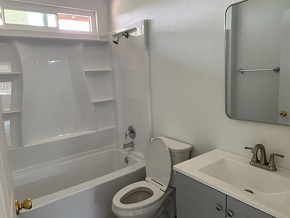 All freshly renovated! new paint new kitchen, new bathrooms new light fixtures, 4 bedrooms, 2 bathroom Tri-Plex small fenced backyard, covered parking, on sight coin operated laundry, water and trash paid!
