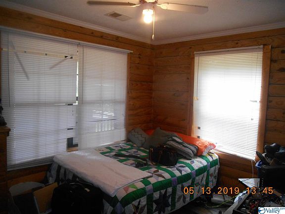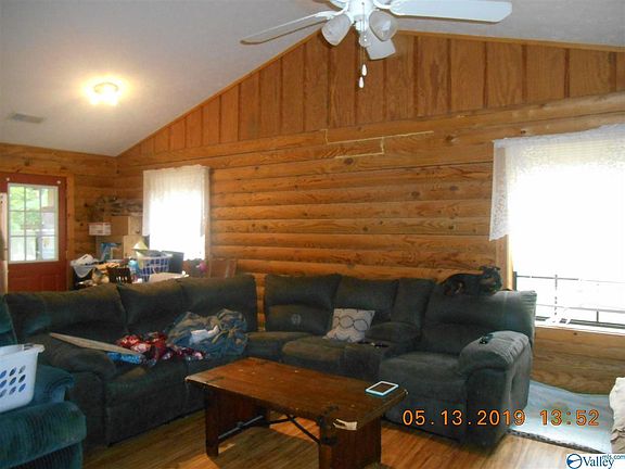 This is a 2 bedroom 1 3/4 bath log cabin with living room and eat in kitchen --- covered front porch --- back deck --- central heat and air --- good level lot