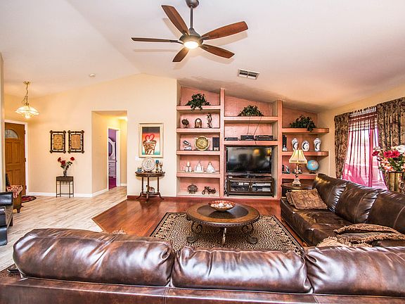 Beautiful great room design on a Cul du Sac. 1/4 Acre LOT. Lush backyard w grapefruit, orange, red berry, fig trees and grape vines. Built in BBQ. Solar panels (owned). Whole house soft water system. RV gate. Granite counters and stainless steel appliances.