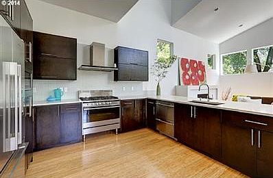 Stunning Contemporary in sought after Eastmoreland. Built in 2012 with attention to details and quiet luxury. Approximately 3744 sq. feet on 3 levels. The main floor features open, great room living with 2 story ceilings and walls of windows. Gourmet kitchen with Fischer & Paykel French door refrigerator, 5 burner gas stove, hood vent and 2 drawer dishwasher plus microwave. The Quartz counters with oversized eating bar is perfect for entertaining. The living room features a gas fireplace with natural stone surround. The dining area opens to a large balcony to bring the outside in. The entirety of the home features Bamboo flooring, high-end fixtures and natural stone. There are 2 bedrooms on the main with one featuring an ensuite bath. The spacious Master retreat has a balcony with a territorial view, sumptuous spa-like bath with jetted tub, oversized walk-in closet with floor to ceiling built-ins and additional washer and dryer hookup. The upper level also boasts a loft area perfect for the home office yet tranquil enough for a meditation area. Just a few flights down you will find the family room with built-in entertainment center. It is adjacent to the oversized wet bar area which features extensive quartz counter space as well as a built-in wine rack. Just a few steps down from here you will find the utility room with built-in pedestals for your washer and dryer as well as extensive cabinetry plus a sink. There is an additional bonus room currently used as a music room with walk-in closet. The home has 3 bedrooms and 4 full bathrooms. It is surrounded by large patios and the grounds are low maintenance. It is perfectly situated within walking distance to Duniway Elementary as well as Reed College. You will love the accessibility to parks such as the famed Rhododendron Garden as well as Sellwood's downtown area for shopping, coffee and restaurants. Within the neighborhood are tennis, basketball and volleyball courts. The new MAX light rail will have a stop within walking distance. This gorgeous home provides you the best of both worlds; modernity, high-end luxurious finishes yet set in an established neighborhood with amazing accessibility. Welcome home!