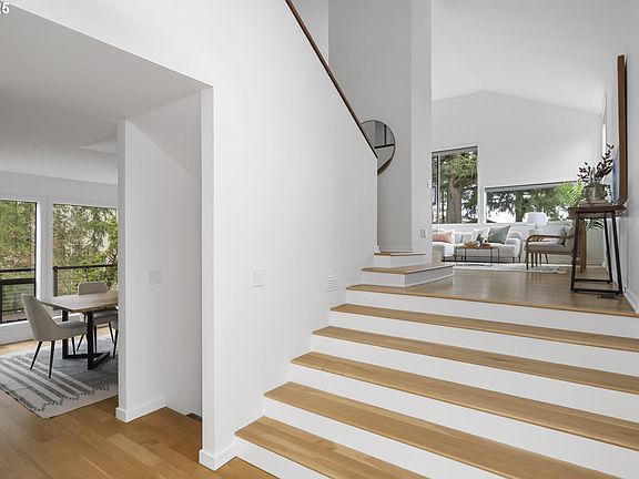 Nestled in the heart of Arlington Heights, this contemporary retreat is a dream for nature lovers and city dwellers alike. With clean lines, expansive windows, and sleek modern design, this home brings the outdoors in—filling every space with natural light and framing the lush, forested surroundings. Step inside to discover a layout crafted for both comfort and sophistication.The gourmet kitchen is a true showstopper, featuring a stunning solarium-style window that extends down to the countertop, seamlessly connecting with nature and making you feel as if you're in a treehouse. An entertainer’s dream, the spacious kitchen, family room, and eating area flow effortlessly to multiple outdoor spaces tucked under the trees, offering the perfect setting for both hosting and unwinding. Enjoy breathtaking views of Mount Hood and partial downtown vistas.The primary suite on the upper level is a true sanctuary, complete with a cozy gas fireplace, serene sitting area, and a spacious ensuite bathed in natural light from overhead skylights. A second upstairs bedroom provides versatility, making an ideal home office, nursery, or guest space.The lower level features two bedrooms, a newly remodeled bath, ample storage, and its own private patio—an ideal space for kids or guests. Tucked away on a quiet cul-de-sac, the home also offers a rare detached 3-car garage with a covered walkway and is just minutes from Hoyt Arboretum, Washington Park, the Japanese Garden, and the Portland Rose Garden. With miles of scenic trails at your doorstep and access to the coveted Lincoln school district, it combines the best of nature and top-tier education. Experience the serenity of this light-filled treehouse, where birdsong, owl calls, and the scent of pine create a peaceful retreat, all just minutes from the city.