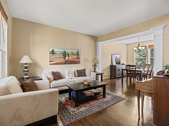 Discover the charm of this stunning two-story residence featuring a striking red brick facade, elegant Palladian windows, and beautifully landscaped grounds that create an inviting curb appeal! As you enter, you are greeted by a grand two-story foyer with a gracefully curved wooden staircase. The first floor showcases beautiful hardwood flooring throughout, with the exception of the family room and the convenient laundry room, which is equipped with a newer front-load washer and dryer and a slop sink. The open-concept living and dining areas are perfect for gatherings, seamlessly flowing into the bright kitchen and breakfast nook, which overlook the spacious family room. The kitchen boasts white 42-inch cabinets, a coffee bar, and a center island, all complemented by high-end LG stainless steel appliances-ideal for cooking and entertaining guests! Step outside through the patio door to your private deck, featuring a built-in hot tub, perfect for outdoor relaxation in the fenced yard. The expansive family room is cozy and inviting, complete with a tiled gas-log fireplace, a TV mount, and floating shelves-perfect for enjoying winter evenings. Retreat to the primary bedroom, which features a stunning curved cathedral ceiling and a luxurious en-suite bathroom equipped with a double sink vanity, a soaking tub, a separate shower, and a private toilet room. The spacious walk-in closet is a dream come true! The three additional bedrooms offer ample closet space. The fully finished basement is a versatile space that includes an office, recreational area, exercise zone, dining area, bedroom area, and an updated full bathroom-perfect for entertaining or accommodating guests. Roof is new in 2018 and Furnace & cac newi n 2021. Enjoy the serene location directly across from a picturesque pond and walking trail that leads to 2 nearby play park! Situated within the highly desirable #308 school district and conveniently close to shopping, expressways, and the Metra train, this home truly offers everything you need.