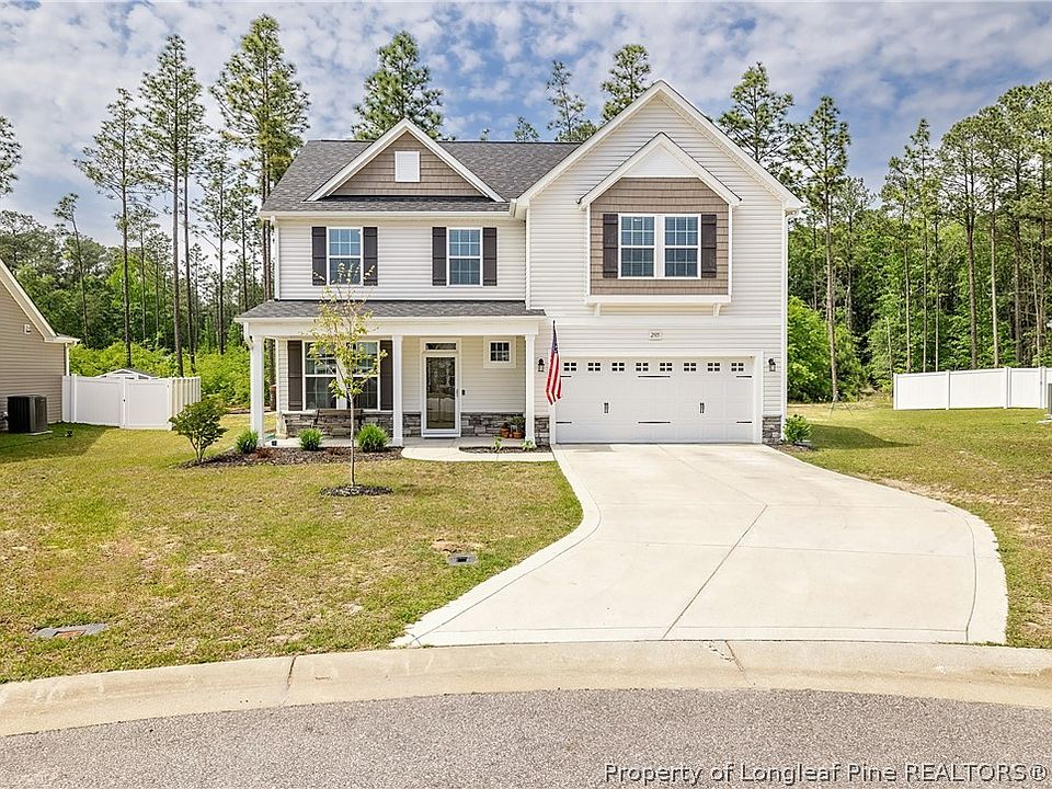 Welcome home! This gorgeous home located in Eastover North has been so lovingly taken care of that it looks brand new. The first floor offers a formal dining room, kitchen with an island, pantry, pull out trash drawer hidden in a cabinet, stainless steel appliances, organizational area, granite countertops, eat in breakfast area with an updated dimmer light above, large living room with fireplace, luxury vinyl plank floors, storm door, and blinds throughout. Upstairs has 3 spacious guest rooms, laundry room with built in cabinet for organizing, large primary suite with vaulted ceilings, garden tub, separate shower, dual vanities and huge walk-in closet. It has a beautiful backyard that is perfect for BBQs. The sellers had the porch screened in with a pull down shade, ceiling fan, a large concrete patio poured, and a 8x10 tuff shed for all your gardening equipment. Located in a cul-du-sac & just a short commute to Fort Liberty. Come see today! Assumable Loan with a 5.625% interest rate!