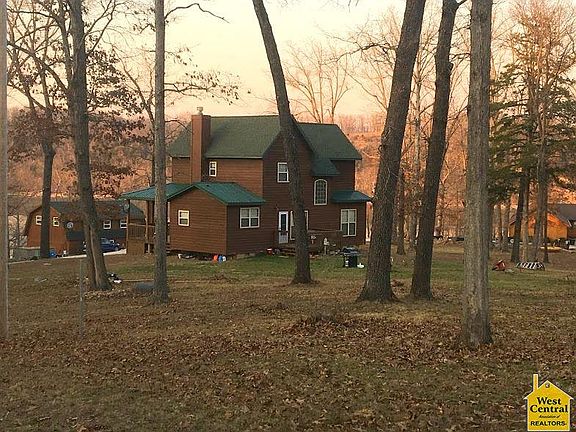 Amazing Water view, 2 story, lake home built in 2007 for sale! 1710 sq ft finished area with 3 bedrooms, 2.5 bathrooms, sitting on 3 lots (0.80 acre) in McKenna Village subdivision, on the 77mm of the Lake of the Ozarks. This beautiful cedar home has a covered deck front entry to the foyer & living room, with a large stone, wood burning fireplace that is open to kitchen & dining areas. The living room is carpeted. The dining and kitchen floors are hardwood. The kitchen features custom wood cabinets with tile back splash, stainless steel, gas/range that could also be used as electric (220v plug in is in place) if you prefer cooking on electric. The refrigerator is negotiable. There is a portable flameless propane heater for back-up heat. The laundry area is off the kitchen. The master bedroom is carpeted, has a walk in closet, and features a tiled floor, master bath with a double laboratory sink, and separate shower and tub.There is also a half bath on the main floor with tiled flooring. The staircase to the upstairs is quite unique featuring a wood handrail, wrought iron spindles, and mosaic tiles over wood newel posts. Bedrooms two and three are upstairs with large closets, carpeted floors, and great views of the lake. Bathroom 2, upstairs has tile flooring and custom wood cabinets. The HVAC, plumbing, and water heater are in the crawl space under the house. There has never been any problems with freezing pipes. The house is on a heat pump system. The seller's have a leased propane tank for the stainless steel range/oven and the portable flameless heater. You'll love the views from the tilt-in, aluminum windows of the lake of the ozarks as well as the wildlife that occasionally stroll through. The sellers say the deer come to visit every night, they love to eat cantaloupe and corn. This property is just a stone's throw to the water and the best bass, crappie, and spoonbill fishing around. McKenna Villa is a no hunting subdivision and the wildlife enjoy their homes here. There is a $50 a year community fee for the common area and boat ramp. With the two extra lots, this property is large enough to park all of your vehicles and toys!