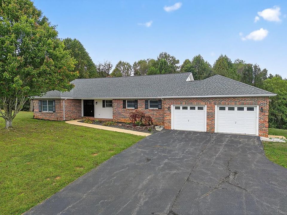 Experience the perfect blend of comfort, style, and space in this beautifully updated all-brick ranch, nestled on over 3 peaceful acres—conveniently located between Abingdon and Damascus for easy access to shops, dining, and outdoor recreation. Step inside to find soaring cathedral ceilings and a striking brick fireplace that anchors the spacious living room—perfect for cozy evenings and entertaining. The heart of the home is a brand-new custom kitchen featuring sleek quartz countertops, high-end custom cabinetry and premium finishes that will impress any home chef. Just off the living room, enjoy your morning coffee or relax with a book in the light-filled sunroom, overlooking your serene backyard. This 3-bedroom, 2.5-bath home includes a luxurious master suite with a spa-like en suite bath showcasing a soaking tub, a custom-tiled walk-in shower, and dual vanities. Two additional bedrooms offer ample space for family, guests, or a home office. The attached 2-car garage provides convenience, while the full unfinished basement offers endless potential for future expansion or storage. With all living space on one level, this home is as practical as it is beautiful. Whether you're looking for a private retreat or a place to entertain, this home has it all. Don't miss your chance to own this rare gem—schedule your private showing today!