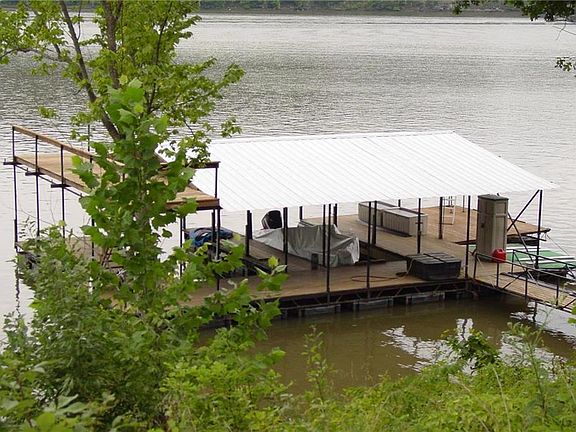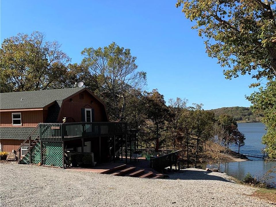 4 BR, 2 BA, waterfront home on the 77MM Lake of Ozarks w/ 2 slip covered dock, 1 lift, & swim platform. Updated kitchen w/ granite counter tops, stainless steel appliances included, wood & tile floors. Detached barn w/4 car spaces, upper loft partially finished for living quarters. Property includes 3 additional water view parcels. This property is located close to Bucknaked Marina Bar & Grill so you are close to gas for your boat, & waterfront dining! You'll enjoy fishing, boating, & watching wildlife!