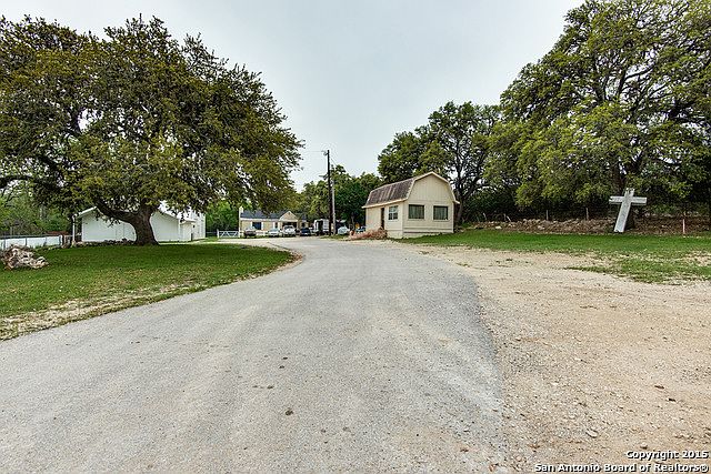 Residential/Commercial acreage close to IH 10 in Boerne. Peaceful community church was formerly a three bay garage and can be converted back if wanted. Main chapel has 1600 sq. ft., prayer room is 512 sq. ft., office is approximately 140 sq. ft., with kitchenette and 1/2 bath. Tenant occupied property is in the back plus a cottage on the right side of property that could be art studio, craft space, or storage. Cottage needs septic for live-in occupancy. Lots of potential for this unrestricted acreage.
