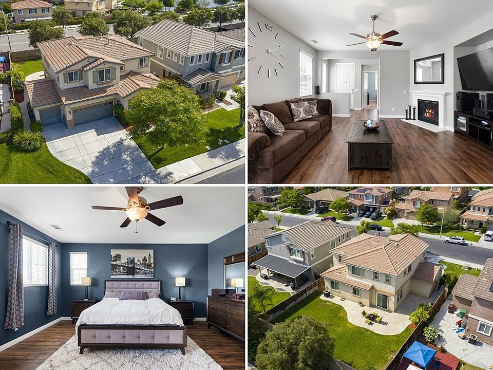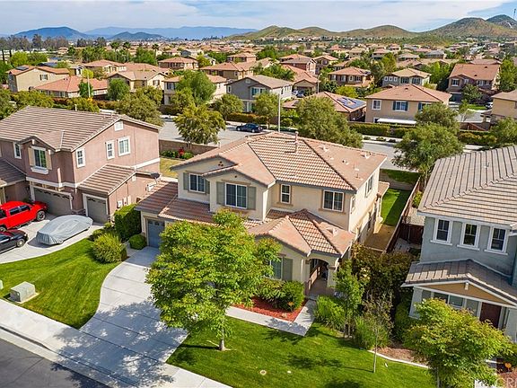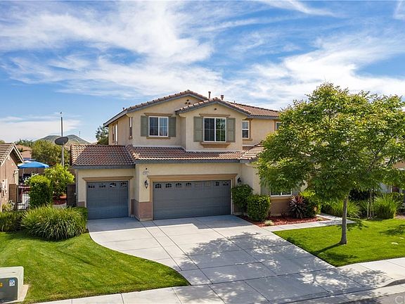WELCOME HOME! Rarely does this floor plan come to market! 29157 Gooseneck Trail is a Beautiful 4 bedroom 3 bath home with 2,445 sqft and a 3 car garage...nestled in the highly desirable "The Lakes" community in Menifee. As you enter you are greeted by the large living room and formal dining room...One bedroom and bathroom conveniently located on the first floor, The large kitchen is equipped with granite counter tops, Kitchen Island, ceramic tile flooring, and stainless steel appliances. This home boasts many features and upgrades including newer wood laminate flooring (practically throughout), fresh interior paint, fireplace in the formal living area and a Quiet Cool Whole House Fan! The HUGE master bedroom features dual vanity sinks, shower, spacious soaking tub and a walk in closet. 2 more guest bedrooms upstairs connected by a Jack and Jill full bathroom and a built in media niche to the left of the stairs. Enjoy the spacious backyard perfect for entertaining...and the privacy of no rear neighbor! "The Lakes" is a gated community which includes not only three lakes with fishing, kayaking/boating but also walking paths, parks and the Bay Club. The Bay Club includes a fitness center, two pools, spa, water slides, grill/patio area, outdoor fireplace, large pool deck, coffee/reading room and an Events Center. Don't miss this incredible opportunity!