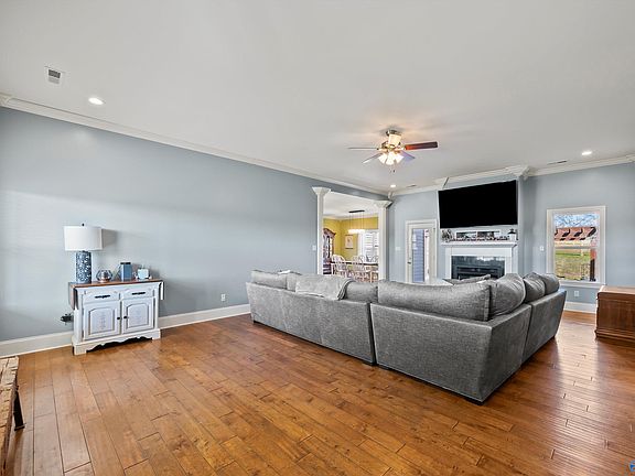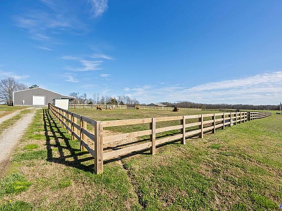 Situated on 4.55 acres, this 5 bedroom, 4 bath home is bright and welcoming! Living areas feature hardwood floors and gas fireplace; in the kitchen, stainless steel appliances, a large farmhouse sink, granite countertops, custom cabinets, large pantry, and attached dining area. Enjoy the private owner's suite with ensuite featuring a soaking tub, shower, double vanities AND double walk-in closet! Guest suite has an addition as a game and entertainment room with Handi cap accessible shower. Would make a great in-law suite! Bonus room will ensure you will have plenty of space! Property features large workshop, barn, fence for livestock. Look at Documents for info. 25 min to Huntsville AL.