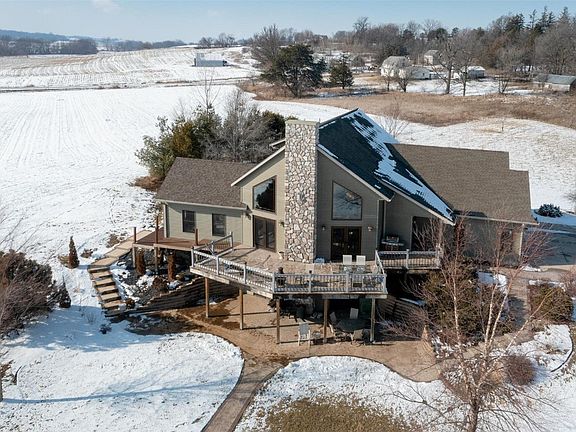 Over 38 acres of land surrounds this incredibly rare acreage! Enjoy the amazing views lined by trees, a creek & tons of wildlife! This stunning home was built to last & loaded with extras & materials that will make you say WOW! Solid core doors throughout, stamped concrete patio, deck and front entrance. This home was made for entertaining with a spacious great room, kitchen with granite bar area and a wall of windows to take in the view. Gorgeous stone fireplace flanked by two sets of french doors leading to the deck. Don't miss the 3 seasons addition with more incredible views. Main floor laundry/mud room off the garage. Zoned heating/cooling throughout, tankless water heater, well insulated, 9 ft ceilings in the walkout lower level, bar, wine cellar, water & floor drain in the garage. All appliances are included just move in and enjoy. Only 15 minutes to Cedar Rapids & 5 minutes to the beautiful Amana Golf Course.