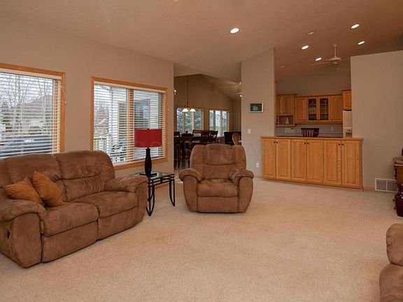 Spacious custom rambler has sensational views, wonderful floor plan, built-ins and storage galore. Large main-floor master suite with walk-in closet, private bath with whirlpool tub. Great room with gas fireplace, kitchen eating + main-floor family room area all have lake views. Huge new maintenance-free deck off living area. Large, lower-level family room has wet bar, built-in entertainment center, gas fireplace and walk-out patio.