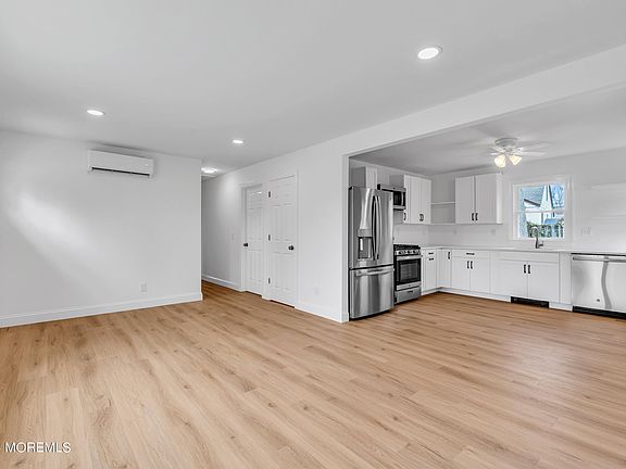 So Fresh and So Clean, this 3 bedroom 1.5 ranch in Wall Twp, has been completely remastered, top to bottom side to side. Sitting on a 100 x 100 lot in the desirable, president section of wall. As you enter the home you will be greeted with a nice open floorplan, where the living room meets the kitchen and dining area. New flooring throughout with new windows allow so much natural light. The Kitchen is brand new with beautiful stainless steel appliances, with a door that leads out to your covered patio. Brand new bathrooms, and three bedrooms. FINISHED BASEMENT for additional living space, and a great laundry room. New Baseboard heat, multi zone Air Conditioning, Hot water heater. A true GEM!