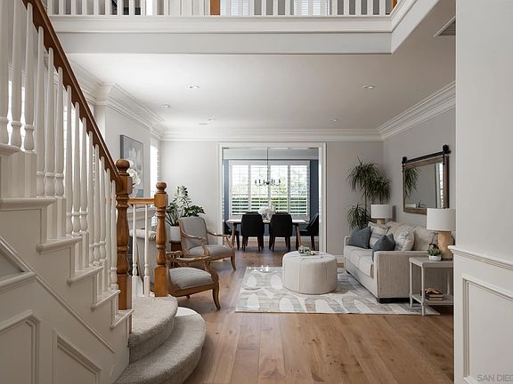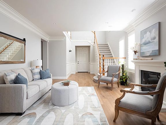 Welcome to this stunningly remodeled home with luxurious outdoor amenities and views!! Located on one of the MOST SOUGHT after streets in La Costa Valley. Step inside and be amazed by the attention to detail throughout the house. The AC/Heaters, Navien Tankless water heater, and Whole house fan are all newly installed. The downstairs has been fully remodeled with custom cabinets, countertops, and appliances, as well as engineered wood floors and custom window trim. The home also features beautiful crown molding, new paint, and a built-in bench with storage in the kitchen breakfast nook. The three bathrooms have been fully remodeled with new tile, custom vanity cabinets, and quartzite countertops. The upstairs features Shaw carpet and Kohler high-capacity toilets in every bathroom. The guest and primary baths have also been remodeled with new showers, glass doors, and countertops. The primary bedroom features a custom-built closet and a remodeled bath with a shower, glass doors, jacuzzi tub, counters, and faucets. The home also boasts two fireplaces with new decorative glass rock and a high-end speaker system in the family, living, and outdoor patio areas. The family room also features a stunning custom stikwood wall. Step outside to your own oasis, featuring professionally designed landscaping with Kentia, Sago, Pigmy, Queen and King Palms, Lemon and Lime trees, Agava Plants, Birds of Paradise, and a Rachio Sprinkler timer operated by an app. The backyard is fenced and gated for privacy and features disappearing screen doors, perfect for enjoying the outdoors.