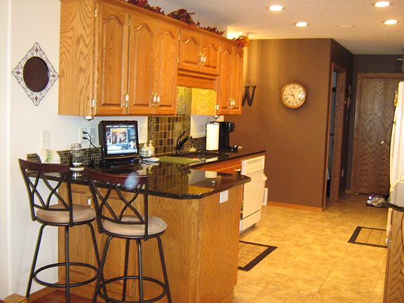 Spectacular view from this ranch style twin home located in NW Bismarck-main floor laundry, master bedroom and master bath-beautiful hardwood floors in dining room, family room and master bedroom-granite countertops in kitchen and master bath-under counter LED lighting in kitchen-marble flooring in master bath and fron tentry-vaulted ceilings and gas fireplace in family room-daylight lower level has family room with gas fireplace, full bath and 2 nice sized bedrooms and large storage area-Bose surround system runs throughout the house and patio