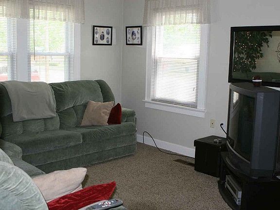 Get more for your money in this 3-bedroom/2-bath home on East Side and close to U E. You'll enjoy rays of sunshine on the welcoming heated front porch, Charming living room with wood floors, an updated kitchen with appliances included, Corian countertops & oak cabinets. Large Sun room off kitchen access the back yard. Main level master bedroom with large closet. Main level bath has laundry chute. Large upstairs bedroom with extra storage and a play room for the kids. In the basement you will find a comfortable family room with built in entertainment and room for storage. All the characteristics of a home of this era with arched door ways, hardwood floors, including a white picket fence. Outside storage includes an attached garage plus 2 yard barns. Located on a corner lot.