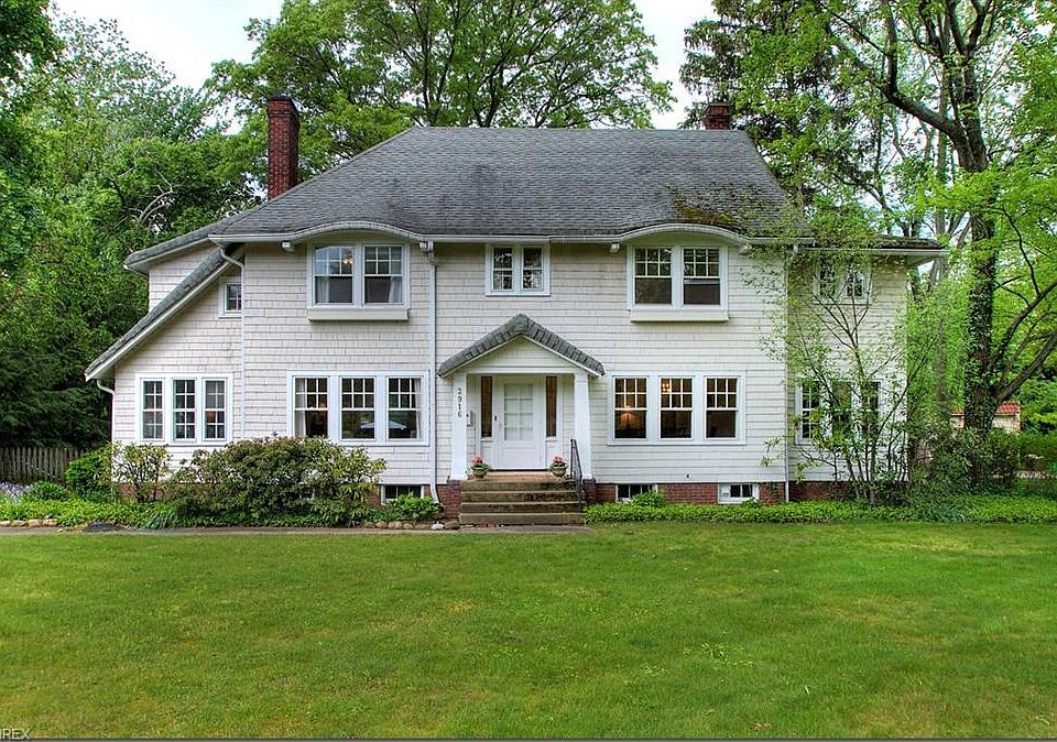 Special wood shingled center hall colonial with gleaming hardwood floors. Intricate tiled vestibule leads to foyer with open staircase. Light bright living room has wood burning fireplace, crown and picture frame molding and opens through French doors to a sunroom with additional fireplace and French doors leading to the rear yard. The formal dining room, with wainscoting, leads to a butler's pantry and also through French doors to a carpeted family room with fireplace, wall of built-in shelves and access to the breakfast room, off the kitchen. The sunny white kitchen features a gas cooktop, built-in ovens, microwave, desk area and a breakfast room, with access to the fenced rear yard with generous green space. The large master bedroom has a huge walk-in closet and access to a full bath with new tile floor. Three additional bedrooms and a full bath complete the second floor. The finished third floor offers two bedrooms, one with a wall of built-in drawers and a full bath with a claw foot tub. Located within walking distance to the RTA rapid and minutes to Shaker Square, University Circle, University Hospitals and the Cleveland Clinic.