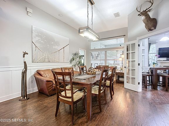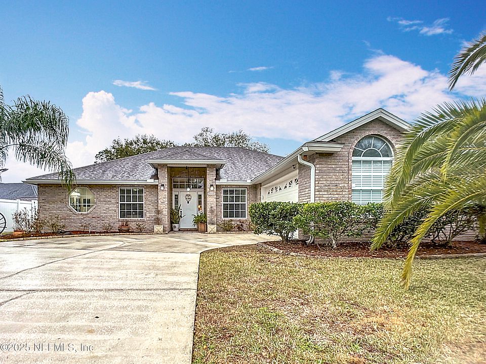 This beautifully updated 3-bedroom, 2-bath home is nestled on a private, fenced-in 0.33-acre lot, in a peaceful community just minutes from I-295. Upon entry, the open floorplan features a spacious dining area, beautiful granite countertops, breakfast bar and eat-in kitchen, leading to a quaint and cozy living area with shiplap accents . The floorplan also features split bedrooms, two versatile bonus rooms, and an oversized master suite, offering a relaxing soaker tub, separate shower, and a walk-in closet. Enjoy year-round outdoor living on your screened lanai, and enjoy a variety of activities in your expansive backyard, complete with fire pit, and enclosed gazebo (with electric already run). The home also includes a two-car garage with built-in storage shelves, washer & dryer, an extra refrigerator, and a large shed for additional storage. With a new roof and A/C, this move-in-ready home is perfect for both entertaining and unwinding in your very own private oasis.