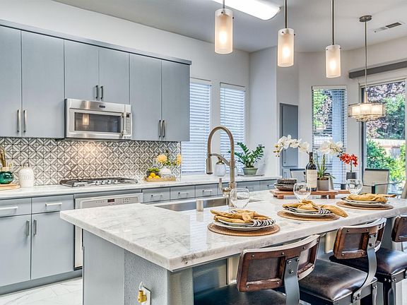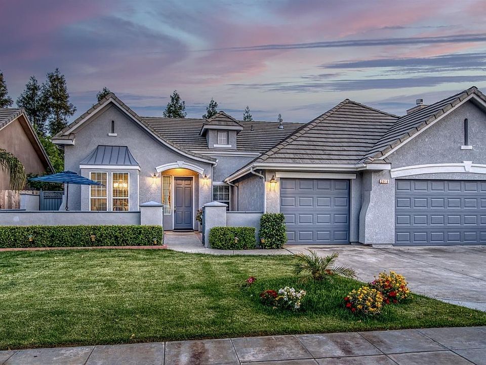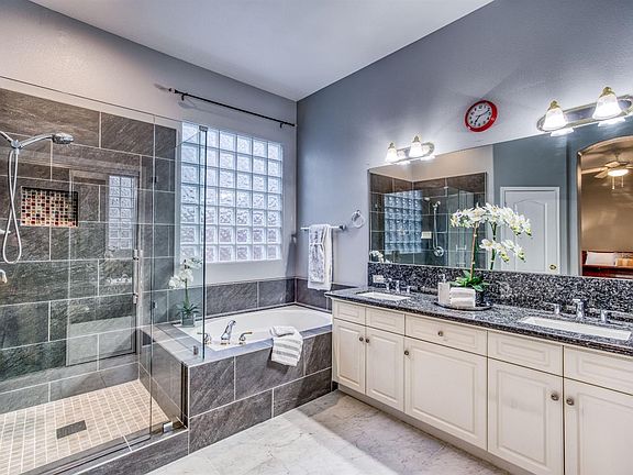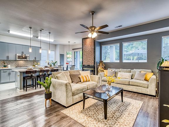 You will love coming home to the spacious and relaxed feeling of this impressive gated courtyard entry. Then, upon entering you will immediately be drawn to the large dining room to your left (which can also be a living room/game room); and straight ahead to the modern open concept great room & kitchen w/quartzite counters & eye-catching fireplace. With new decorator paint inside & out, luxury vinyl wood floors, and gorgeous modern marble-look porcelain titles in entry & kitchen, you can't help but fall in love and say WOW! Also come home to amazing additions in the stunning outdoor living space w/ newer gazebo & tiled patio surrounded by lush green grass that makes this perfect for entertaining many guests at your summer BBQ. Coming back inside, this home offers a built-in desk, and off to one side is the main bedroom suite w spa-like bath...like in a magazine! Bathrooms were recently updated w/ gorgeous granite countertops & titled floors. Too many extras- butter hurry and see!