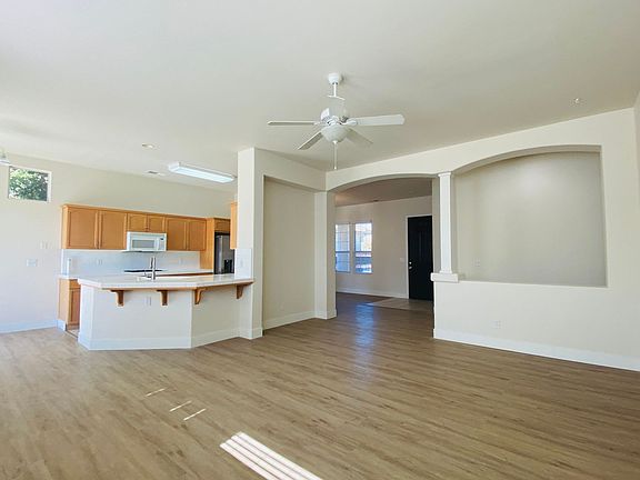 Move in ready 3 Bed/ 2.5 bath. Wood vinyl and tile floors throughout. Home has tall ceilings that provides a very spacious feel. Entry opens into a formal dining room with open archways into the great room and kitchen. Kitchen has great tile counter space with wraparound breakfast bar, gas range, stove, built in microwave, dishwasher and refrigerator. Kitchen is open to informal dining room and great room with built ins, ceiling fan and great windows for natural light. Main bedroom has tall ceilings, walk in closet, en suite, 2 sinks, shower & soaking tub. Two additional bedrooms and guest bathroom with tub/ shower combo. Interior laundry has cabinets & washer and dryer Attached 3 car garage Large backyard has covered patio, great grass area and big cement pad for the RV parking. No pets. No smoking. Credit score above 650 required. Tenant in charge of yard care. Clovis Unified Schools. Near great neighborhood parks. Renter's insurance is required. DRE# 01901101. All information is deemed reliable but not guaranteed and is subject to change.