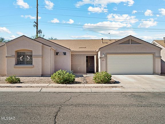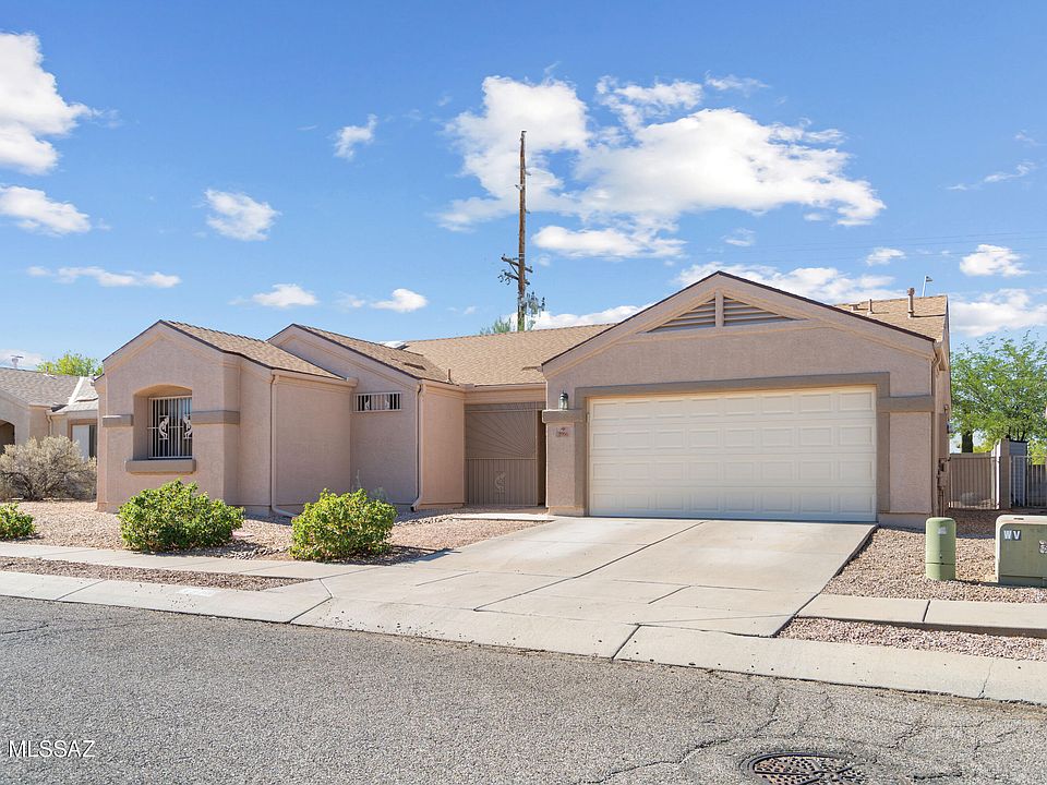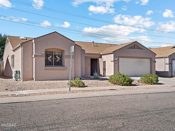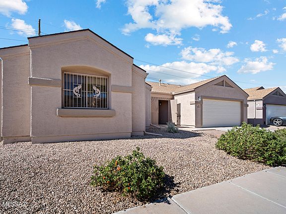 Welcome to this immaculately maintained 4-bedroom, 2-bathroom home, located across the street from Davis-Monthan Air Force Base. Perfect for first-time homebuyers or airmen wanting a great place off-base for their growing families, this turnkey home is ready for your personal touches. Inside, you'll find tile flooring throughout, with brand-new carpet in the bedrooms for added comfort. The split floor plan provides extra privacy with the spacious primary bedroom set apart from the other bedrooms. The primary en suite has recently undergone a stunning transformation, boasting new floor tile, a sleek shower, and a fresh tub surround for a touch of luxury. Throughout the home, you'll also enjoy unique custom metalwork, giving it a distinctive charm that truly stands out. The attached garage includes built-in cabinetry, providing plenty of extra storage for your needs. Step into the backyard, designed for easy living with low-maintenance gravel landscaping. The covered patio is the perfect spot to relax, unwind, or enjoy a barbecue with friends and family. This home is ready for you to move in and start creating memories. Don't miss out on this fantastic opportunity!