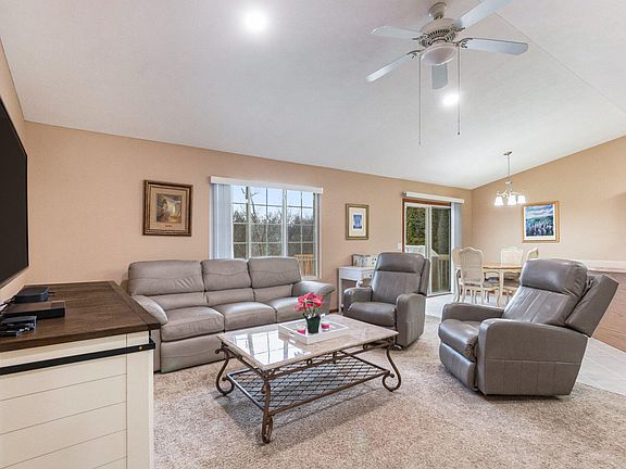 Welcome home! You are sure to love this charming walkout ranch nestled at the end of a quiet cul-de-sac. This beautiful home offers both convenience & privacy, with serene, wooded views and abundant wildlife right out your backyard. Step into a spacious 26' Great Room featuring cathedral ceilings, spacious kitchen, a stylish island, and a dining area with a slider leading to the deck, perfect for entertaining or unwinding. The main-floor primary boasts a wall of closets, while the 2nd bedroom includes a generous dressing room-style closet for ample storage. The finished walkout lower level expands the living space with a bright family room that opens to a patio, a large bedroom with double closets, 2nd full bath, and a conveniently located laundry room. You'll also appreciate the utility room, offering plenty of additional storage. Lovingly maintained by the owner for over 5 years, this home features numerous updates, including a new 50-year shingle roof (2019), a new furnace & central air (2022), a new water heater (2019), and some fresh paint, newer carpet, making it truly move-in ready. Hurry, this is the one! Schedule your private showing today! The seller directs the listing agent to hold all offers until Tuesday, March 4th at 1:OO pm.